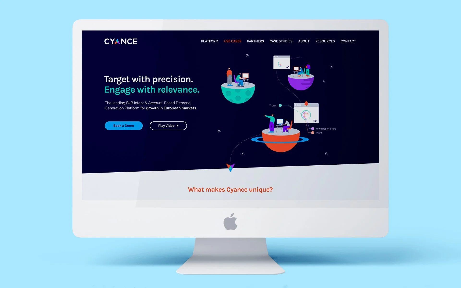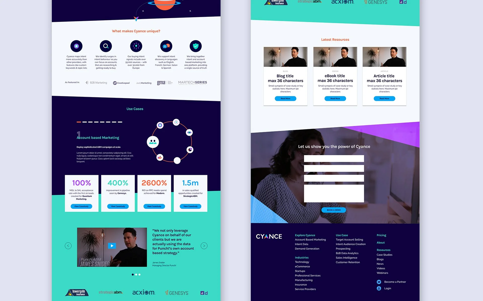 By turning the ‘A’ into an arrow we created an icon that could be used across the brand. And by adding motion to the mix it solidified Cyance’s ability to drive sales forward.
